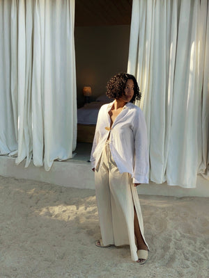 Gabita in the wild — a petite take on our hand linked leather Gabi bag; the mini purse has a traveler's spirit. An on-the-go accessory that embodies a daily practice of refining down to just what you need.